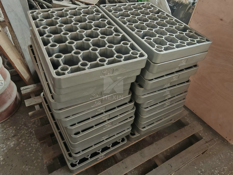 The image shows a Cast Trays from a recently completed heat treatment fixture. Its main dimensions are 546*370*50 mm. The number of stacking layers and the height of each layer depend on the number of workpieces being heat treated. Made of 1.4849, it is manufactured using a silica sol precision casting process. The heat treatment fixture includes a combination of parts such as a Cast Trays, grids, column, and spacer tube. Precision casting of this fixture offers advantages such as precise dimensions, high temperature resistance, resistance to deformation, and direct installation. This batch of heat treatment fixtures has passed quality inspection and has been packaged and shipped.